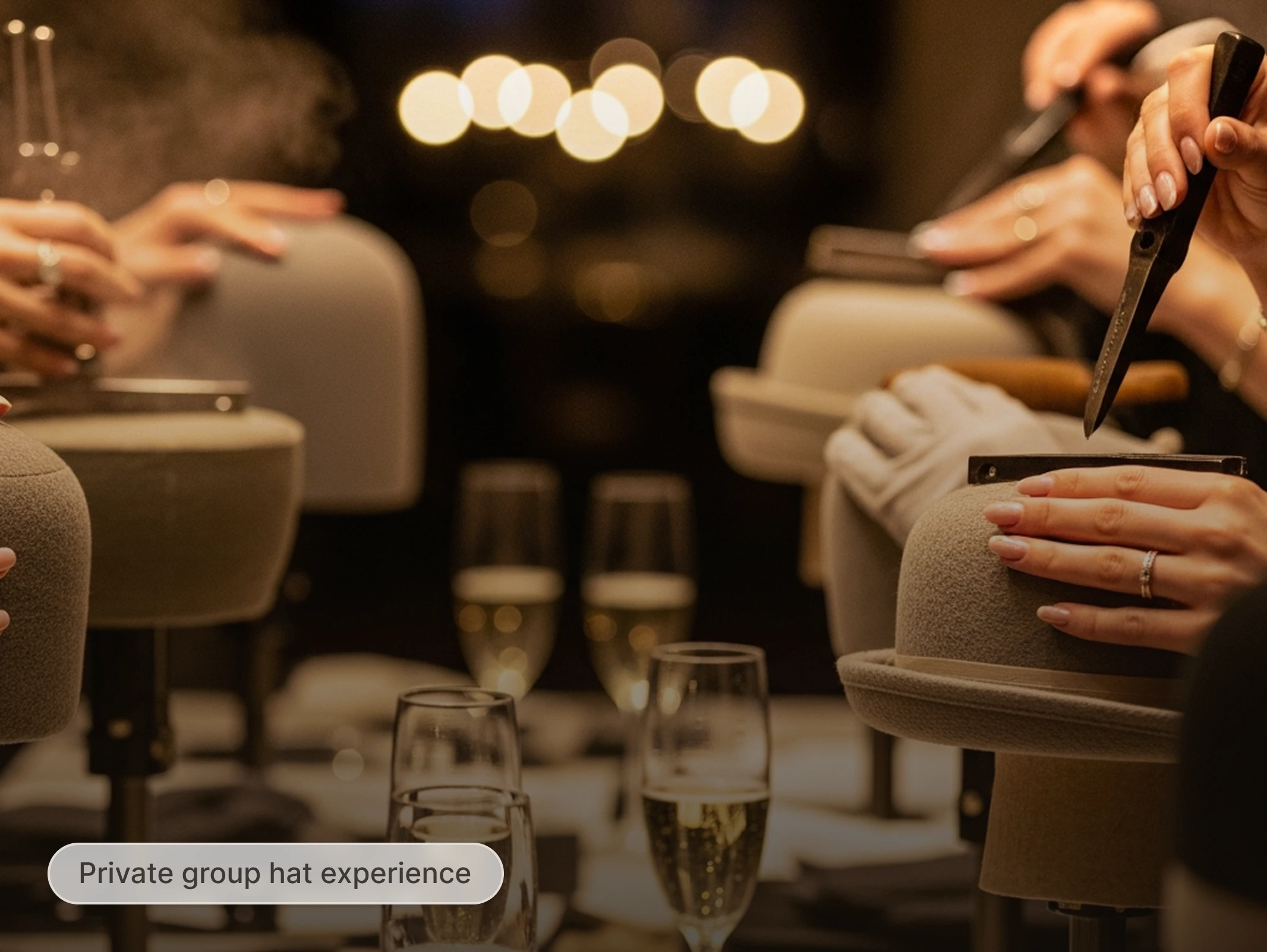 This isn’t a product pulled from a shelf. It’s a hands-on experience where your hat is shaped, styled,